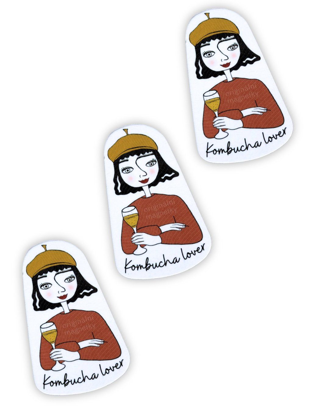 Ilustrovaná originální magnetka pro všechny milovnice kombuchy. Je jedno, jestli je ovocná nebo bylinková, kombucha je prostě to pravé pro váš zdravý životní styl.