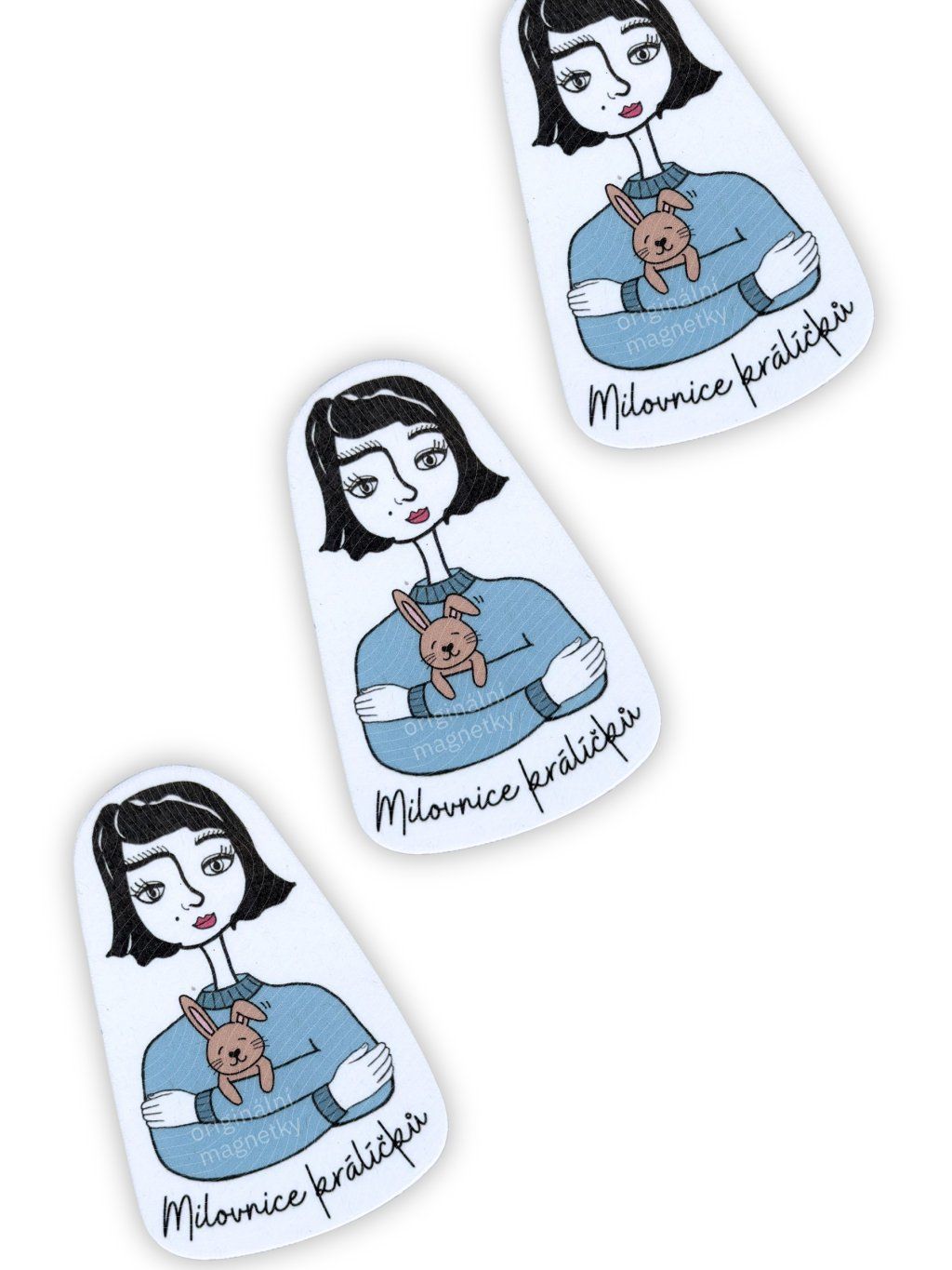 Ilustrovaná originální magnetka pro všechny milovnice ušatých králíčků. Ať už je to hopsání, dlouhé uši nebo křupání mrkve, králíci jsou ten nejroztomilejší domácí mazlíček.