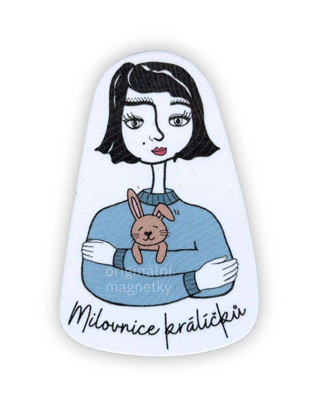 Originální magnetka od české značky s autorskou ilustrací panenky s králíčkem v náruči, která vám bude dělat radost každý den – třeba na lednici nebo magnetické tabuli.