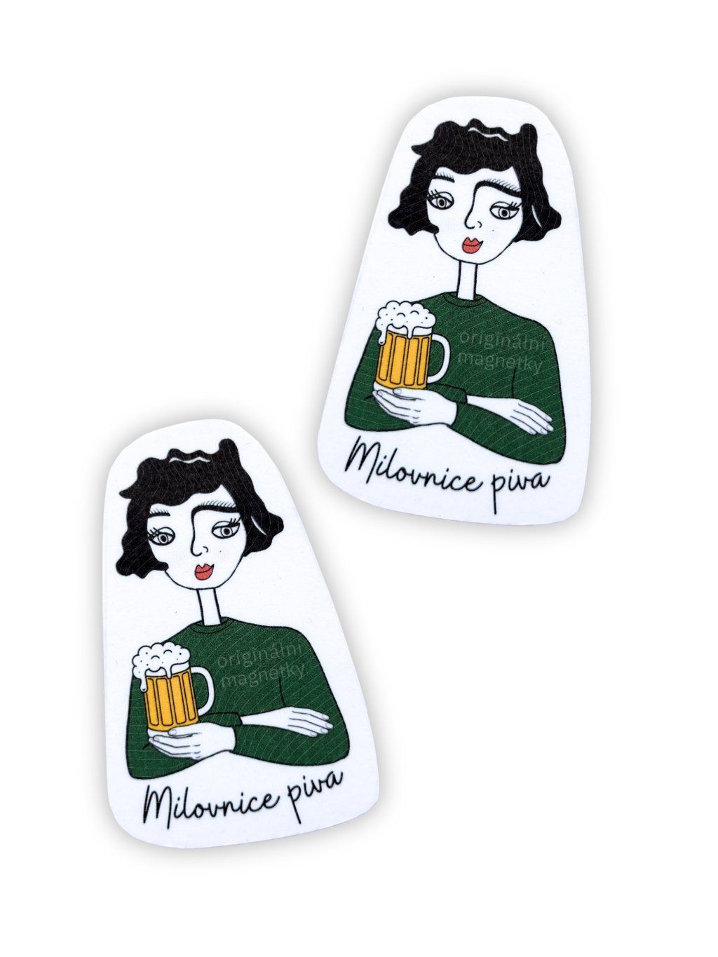 Originální magnetka od české značky s autorskou ilustrací panenky s pivem v půllitru, která vám bude dělat radost každý den – třeba na lednici nebo magnetické tabuli.