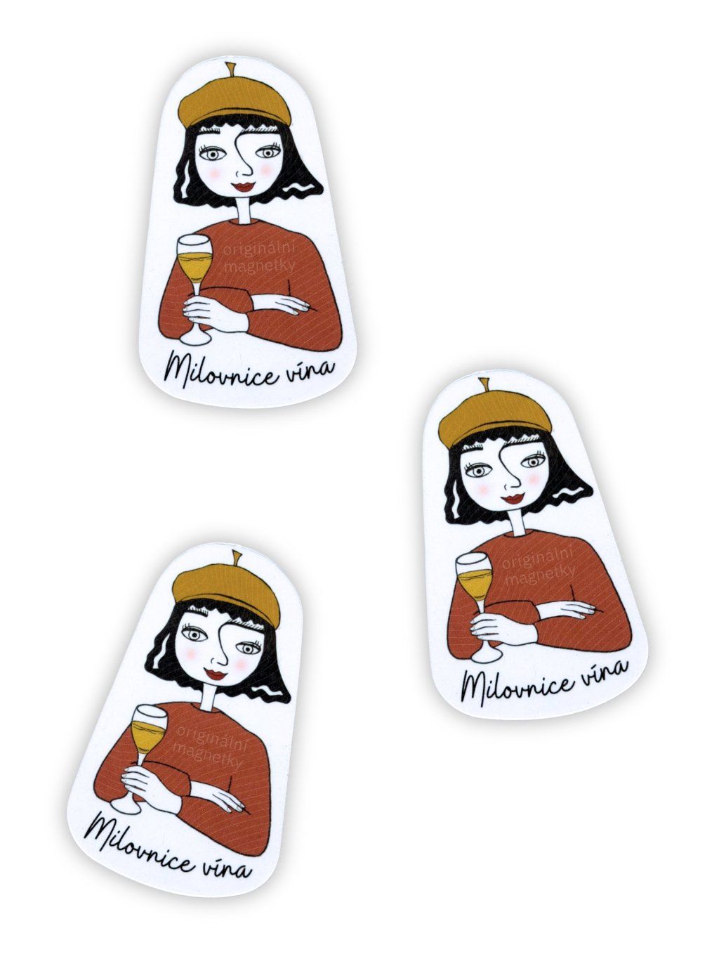 Originální magnetka od české značky s autorskou ilustrací panenky s bílým vínem ve skleničce a vyladěným baretem, která vám bude dělat radost každý den – třeba na lednici nebo magnetické tabuli.