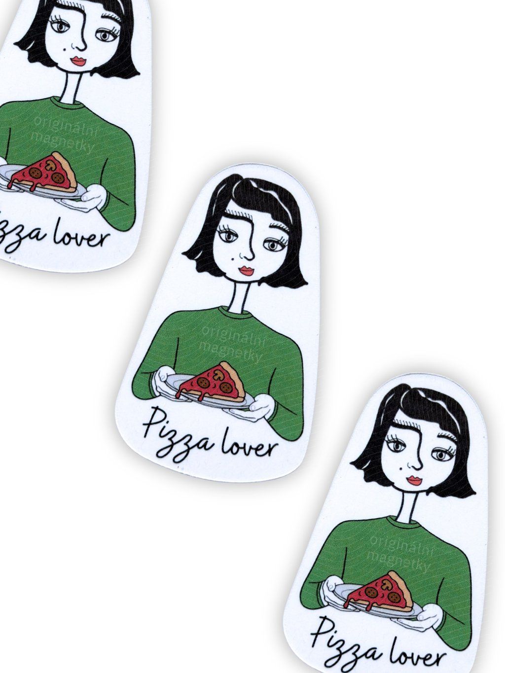 Originální magnetka od české značky s autorskou ilustrací panenky s pizzou na talíři, která vám bude dělat radost každý den – třeba na lednici nebo magnetické tabuli.