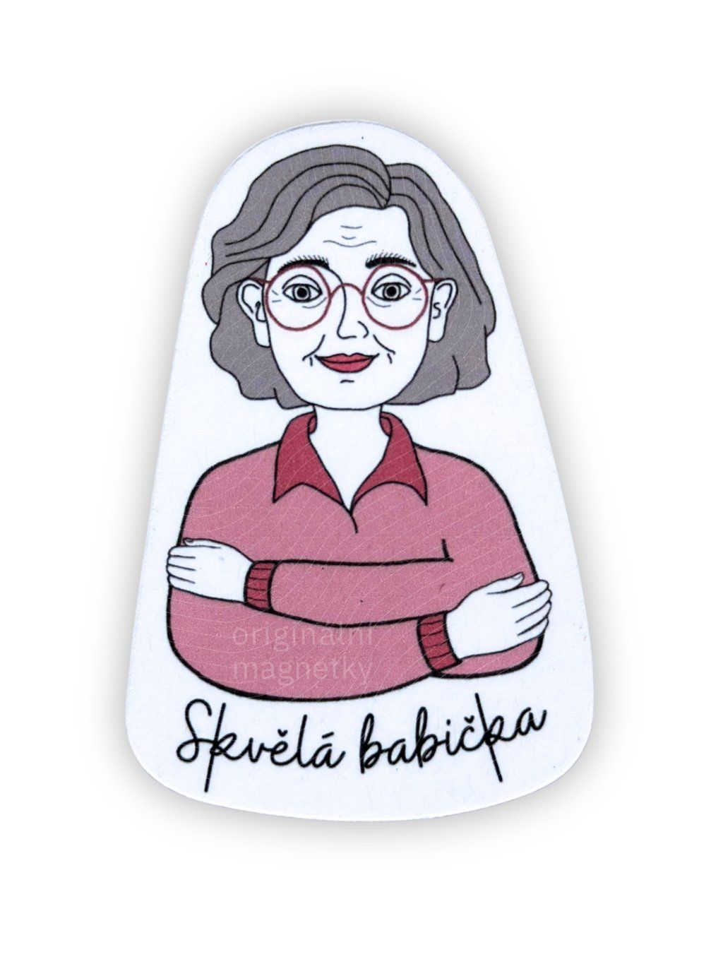 Originální magnetka od české značky s autorskou ilustrací skvělé babičky s brýlemi, která vám bude dělat radost každý den – třeba na lednici nebo magnetické tabuli.