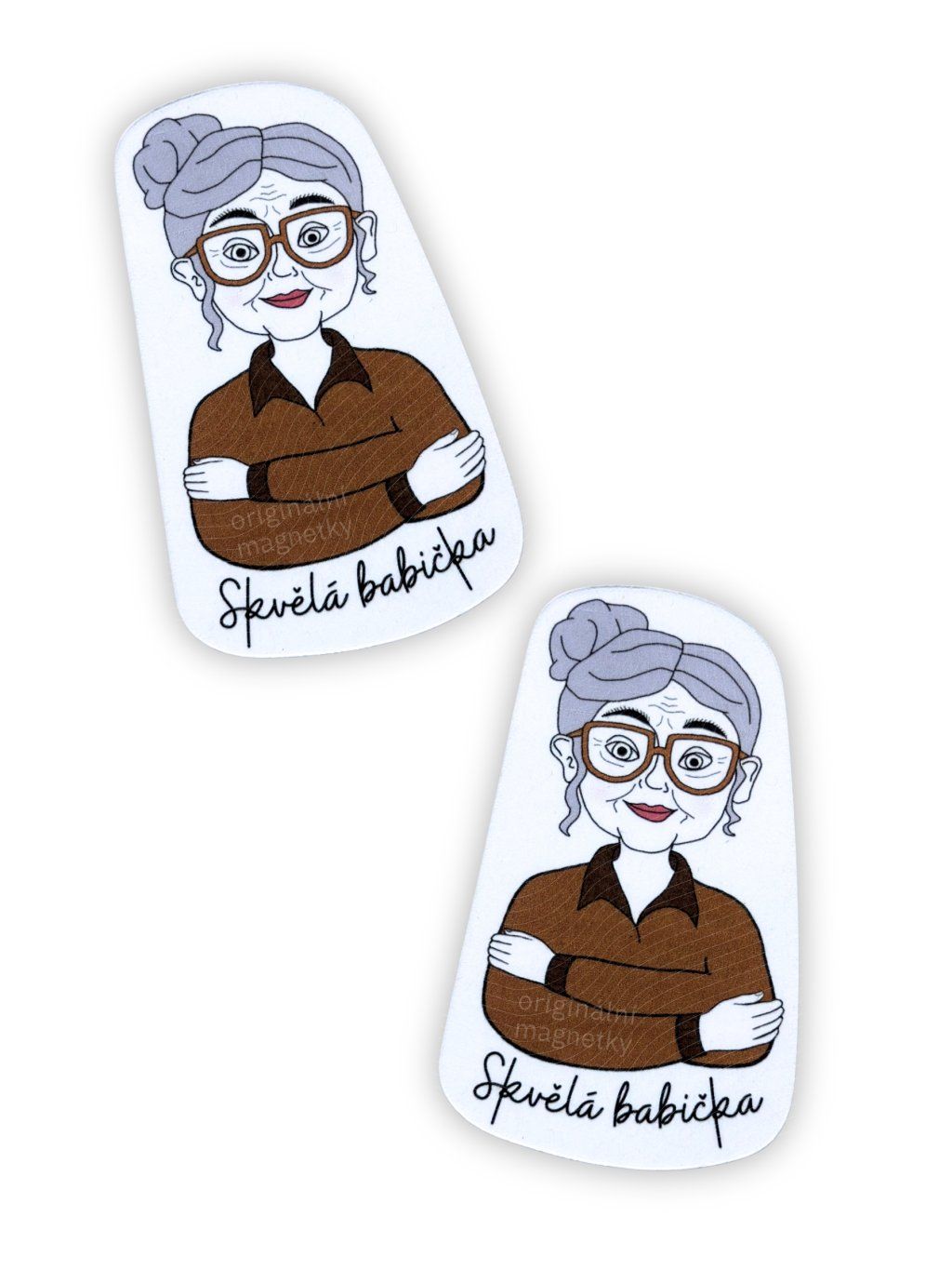 Originální magnetka od české značky s autorskou ilustrací té nej babičky - s brýlemi a drdolem, která vám bude dělat radost každý den – třeba na lednici nebo magnetické tabuli.