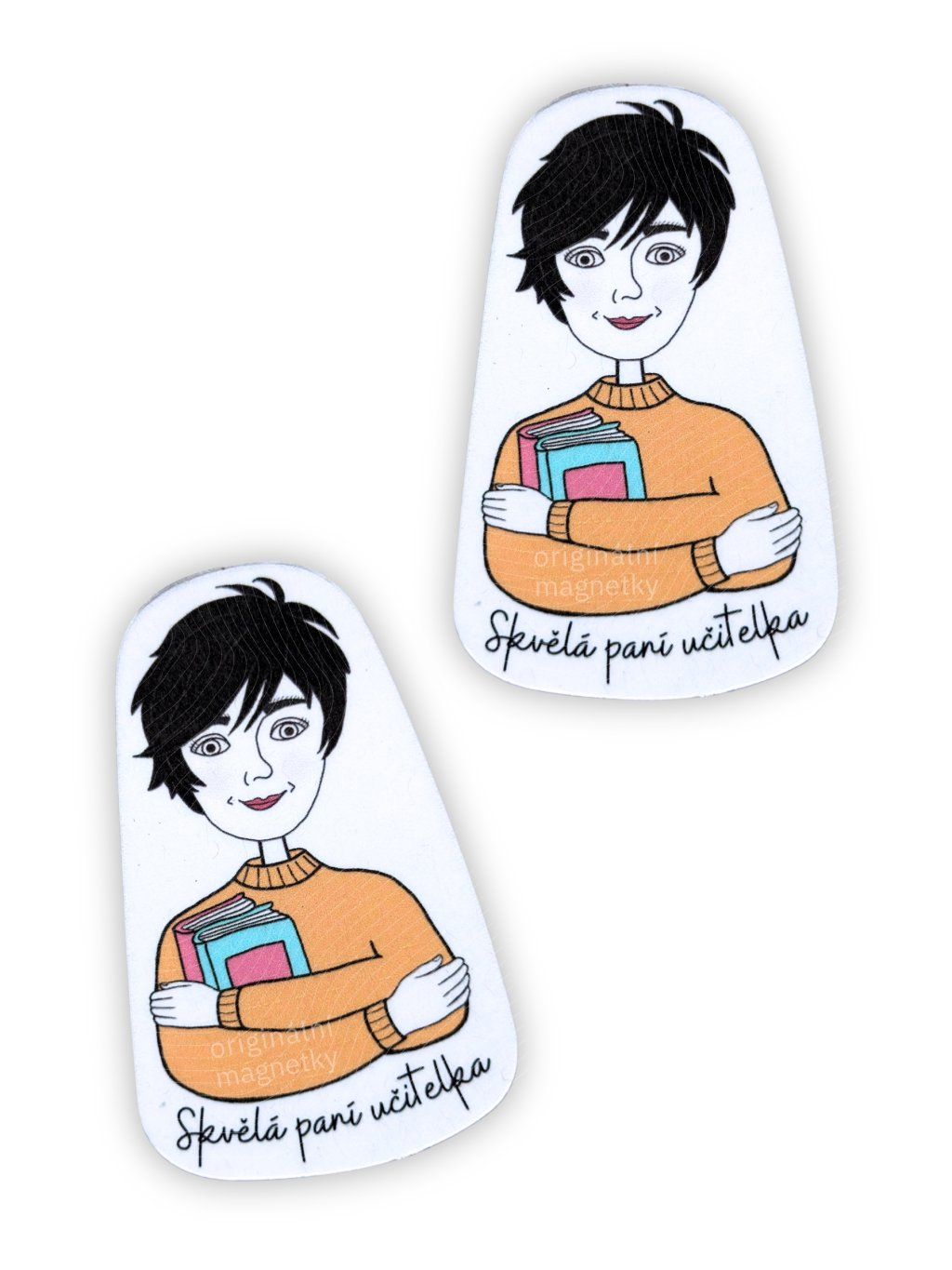 Originální magnetka od české značky s autorskou ilustrací paní učitelky s knihami, která vám bude dělat radost každý den – třeba na lednici nebo magnetické tabuli.