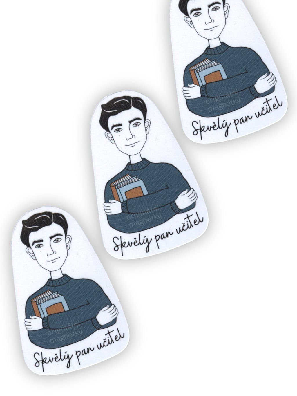Originální magnetka od české značky s autorskou ilustrací pana učitele s knihami v náručí, která vám bude dělat radost každý den – třeba na lednici nebo magnetické tabuli.